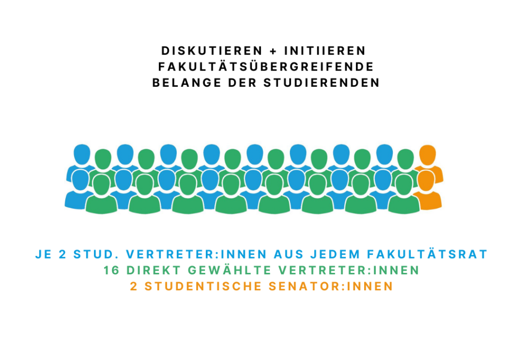 Der Konvent ist das legislative Organ der Studierendenvertretung, sozusagen das Studierendenparlament. Damit entscheiden wir über alle fakultätsübergreifenden Angelegenheiten, die sich von Seiten der Studierenden ergeben.